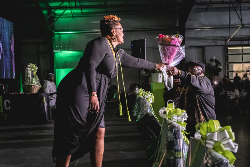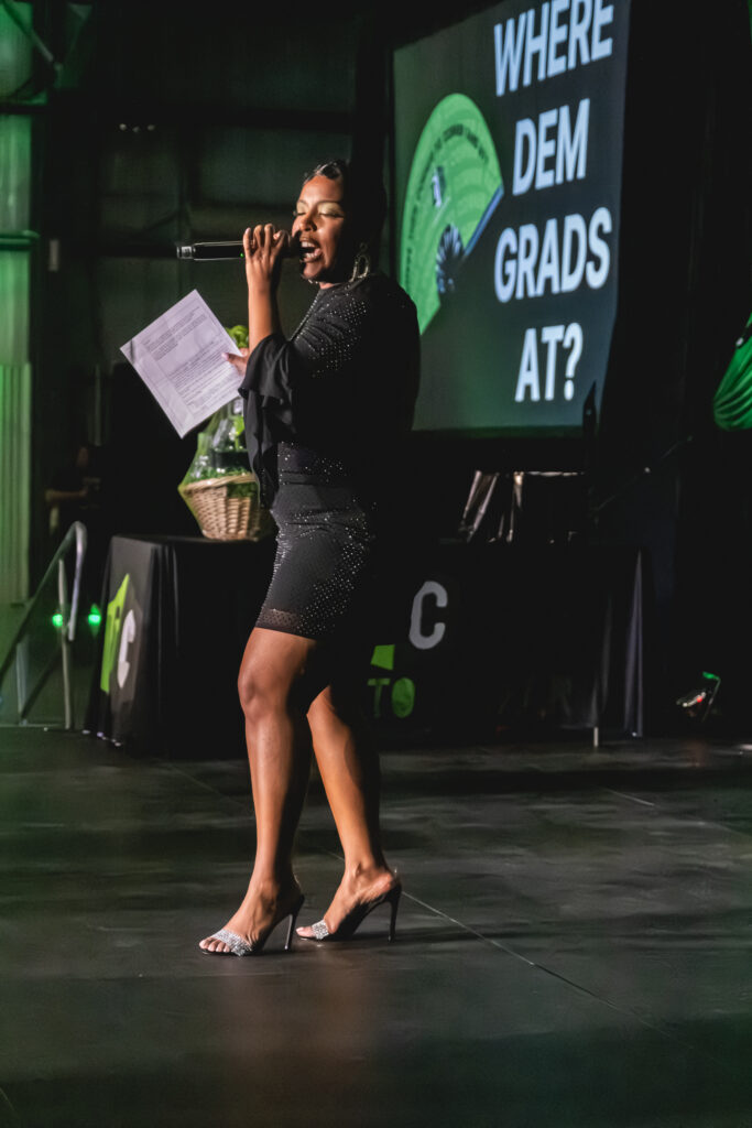 Exquisite Appeal provided beautiful green and black velvet drapes for our stage backdrop, and Creative Soulz Printing showed out with custom decals. As always, Shana brought the energy for each and every graduate who crossed the stage.